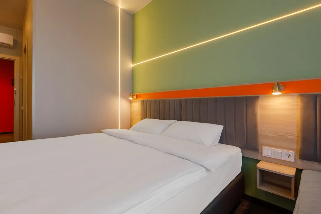 Все достойно, чисто. Заселили быстро, все устроило. В номере телевизор, холодильник , чайник. Советуем к проживанию)