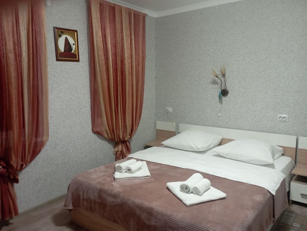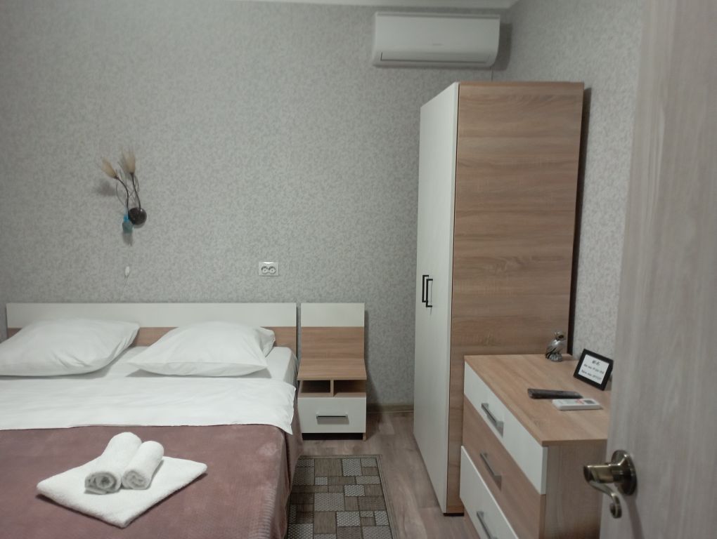 Удобное размещение для двоих или одного человека в гостевом доме состоящем из однокомнатных квартир. В каждом номере современная мебель, сантехника, тв, сплит система, холодильник,плита, свч, чайник, посуда, вайфай,. Дом находится в центре курорта, в шаговой доступности санатории, питьевая галерея, парк, рынок, магазины, кафе.В номере есть чай, кофе, сахар, сахарозаменитель, фильтрованная вода. В санузле есть мыло, гель для душа, шампунь